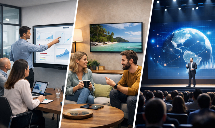 Display sering menjadi pusat perhatian dalam setiap ruang—baik itu ruang meeting, lounge kantor, maupun auditorium. Banyak keputusan investasi dimulai dari sini: memilih ukuran layar, resolusi, hingga brand.